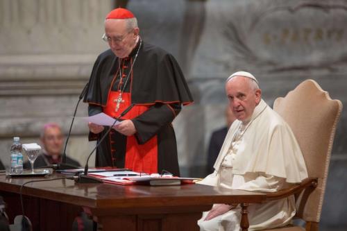 Il Papa nella Basilica di San Giovanni in Laterano ha aperto il convegno della diocesi di Roma (LaPresse)